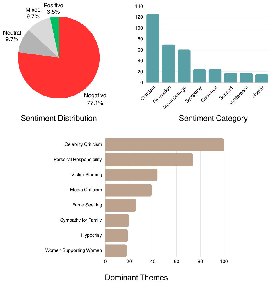 The People Magazine comment section shows where Cabot went wrong in the themes that came up around personal responsibility, victimhood, criticism, frustration, and moral outrage. This is an audience that felt manipulated. They wanted advocacy, something larger than Kristin Cabot’s personal narrative, and got… more of Kristin Cabot’s personal narrative. They felt the advocacy framing was being used as a shield rather than a genuine cause.